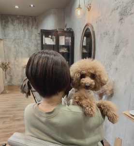 2021年12月9日 / 最終更新日 : 2021年12月9日 dear ブログ いつも一緒♡♡ こんばんは😊DEARです。 ツヤツヤ前下がりショート❣️ ふわふわヘアのトイプーのベアーくんはいつもママと一緒です♥