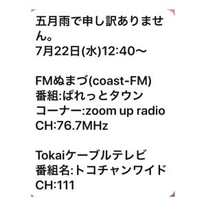 2020年7月21日 / 最終更新日 : 2020年7月21日 dear ブログ ケーブルテレビとラジオで紹介されます😊 こんばんは😊DEARです。 明日PM12:40からケーブルテレビとコラボコーナーの地元ラジオ局でHAIR DESIGN DEARが紹介されます🤗 お時間がある方は是非聞いてくださいね!