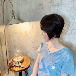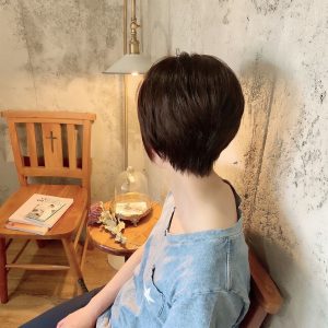 襟足を軽めに、トップにボリュームをつけたショートカット。