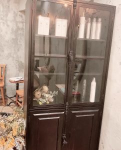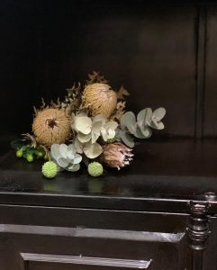 頂いたお花がいい感じにドライになってきたので、お気に入りのキャビネットに飾りました(^^)
