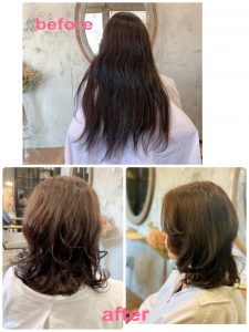 ロングヘアはメンテナンスや日々のシャンプーや、ブローが大変なので、バッサリcutして、毎日が楽になりますね!