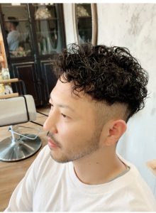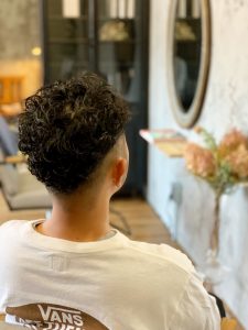 ランダムにロッドを巻き、スパイラルパーマで根元を立ち上げました。