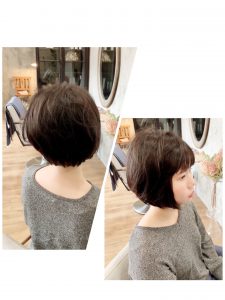 サイドが少し短かったので、トップから前下がりラインを入れてより前下がり感を🎶